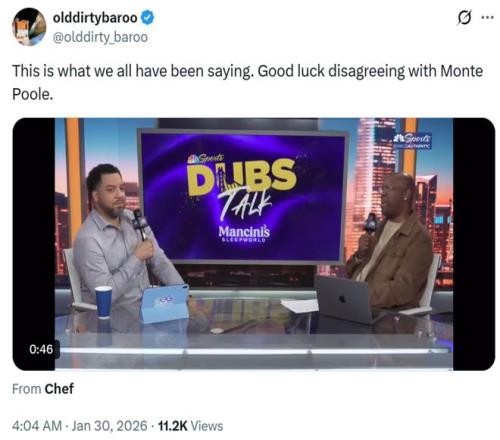 比赛第三节还剩4分多钟时,库里因右膝酸痛提前退出比赛,并缺席末节争夺,赛后湾区媒体95.7 The Game晒出库里在场边的画面。