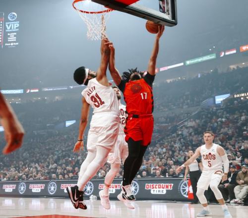 骑士队的阿伦上半场得到25分和10个篮板,汤姆林得到10分;开拓者队的勒夫得到13分,卡马拉得到9分。