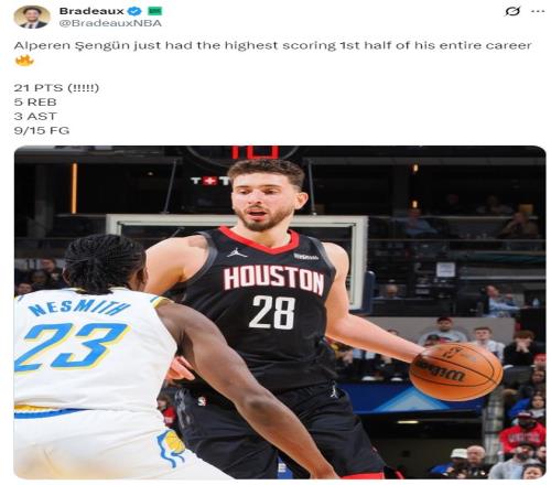 杜兰特因伤缺席,申京再度回到上赛季的那种战术地位,开场短短5分钟就拿到9分(火箭全队13分),首节申京9中5已经拿到11分2篮板1助攻。