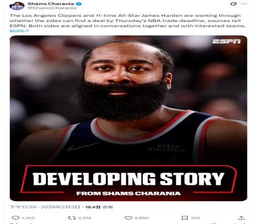 NBA交易截止日前的平静,被一颗突如其来的炸弹彻底炸碎。据权威记者沙姆斯·查拉尼亚报道,洛杉矶快船队与他们的核心后卫詹姆斯·哈登正共同努力,寻求在截止日前完成交易,为这位11届全明星寻找新东家。