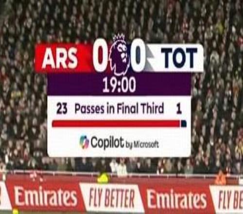 英超第12轮的一场焦点之战正在进行,目前这场阿森纳主场迎战托特纳姆热刺的北伦敦德比已经进行了超过20分钟。在本场比赛进行了19分钟之后,转播信号提供了对阵双方在进攻三区内