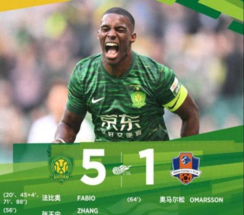 【中超】法比奥头顶脚踢大四喜国安5比1送梅州降级